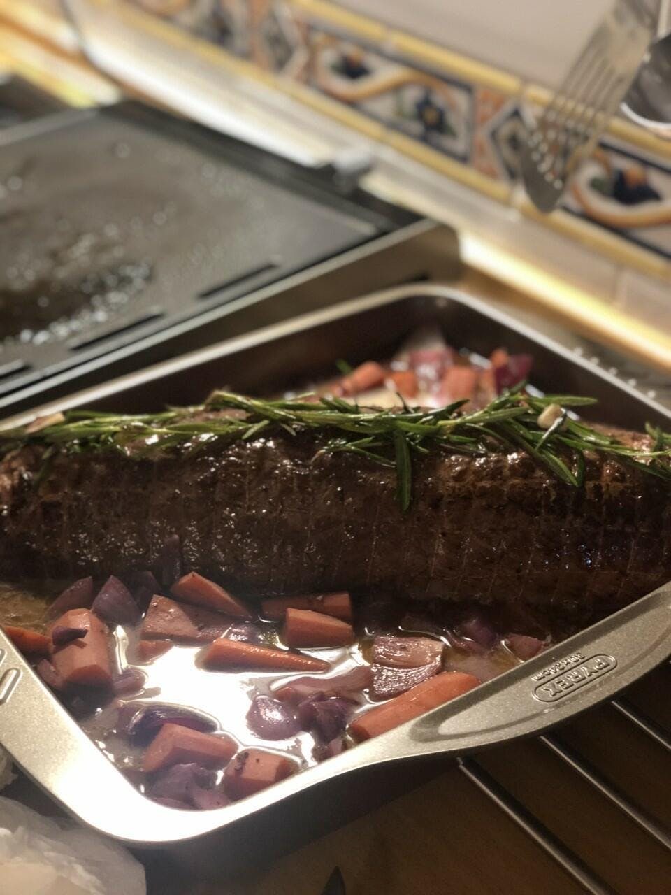 6. Coloca el trozo de carne en una fuente y mete en el horno. Asa durante 10 minutos.
